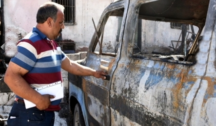 Ev ve minibüs yandı
