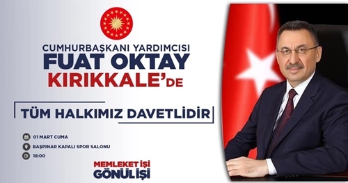 Cumhurbaşkanı Yardımcısı Fuat Oktay, Cuma günü AK Parti Teşkilatı tarafından düzenlenecek olan programa katılmak amacıyla Kırıkkale’de olacak.