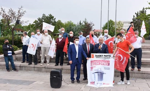 En büyük hayali sorulduğunda, "Babamın iş bulması ve borçlarımızı ödeyebilmesi" cevabını veren yavrularımız var! Çocuğunun istediğini alamadığı için evine geç giden ve sabah okula giderken bir simit parası ver. Evet, dert var, sorun var ama çözüm de var; işte biz buradayız! Bizler Saadet Partisi olarak insanımızın geçim mücadelesine destek olmak, insanımızı dinlemek, sesine ses olmak ve sorunlarına çözüm üretmek için hep birlikte bir "Geçim İttifakı" kuralım istiyoruz! Türkiye'nin bugünkü haline bakıp da üzülen, bunalan, yorulan ve sıkılan her bir vatandaşımıza "Geçim İttifakı"nda bir araya gelme çağrısında bulunuyoruz. Çünkü iktidarın yanlış ekonomi politikalarındaki inadı ve insanımızın derdine duyarsız kalması sebebiyle geldiğimiz noktada; sorunlar, sıkıntılar, problemler artık mutfaklardaki tencerelere dayanmıştır” dedi.