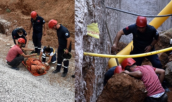 Kırıkkale'nin Yahşihan ilçesinde bir apartmanın su gideri borusu döşendiği sırada meydana gelen göçükte toprak altında kalan işçi kurtarıldı.
