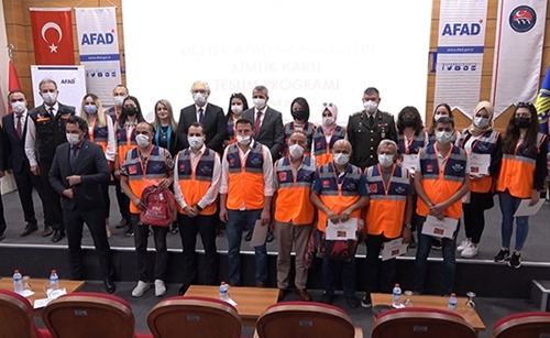 Kırıkkale'de, E-Devlet üzerinden başvurularını yaptıktan sonra ilk yardım ve afet durumunda müdahale eğitimlerini tamamlayarak AFAD gönüllüsü olmaya hak kazanan 20 kişiye, törenle kimlik kartları takdim edildi. MKE Sosyal Tesislerinde düzenlenen program saygı duruşunda bulunulması ve İstiklal Marşının okunmasıyla başladı. Takdim törenine AFAD Başkanı Hamza Taşdelen, Vali Yunus Sezer, AFAD İl Müdürü Mehmet Coşkun, gönüllüler ve diğer ilgililer katıldı.