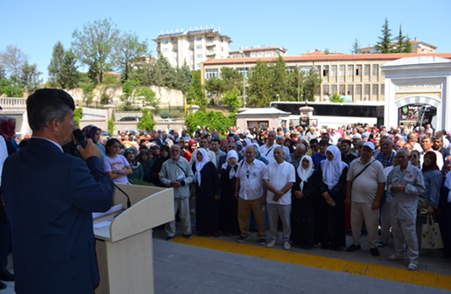 Hac meşakkatli bir yolculuktur. Peygamber efendimiz (s.a.v) sadece hac ibadetini için ‘’Ya Rabbi bana kolaylaştır’’ diyor. Hac başlangıcından dönüşüne kadar çeşitli zorlukların çekildiği ama ancak sabırla bunların üstesinden gelindiği kutsal bir yolculuktur. Cenabı Allah sabrınızı bol etsin, haccınızı şimdiden kabul etsin, kazasız belasız bir şekilde gidip gelmeyi nasip etsin.” dedi. Yapılan duanın ardından İl Müftü Yardımcısı Turan Arslanoğlu’nun başkanlığındaki hacı adayları, ilahi ve tekbirler eşliğinde kutsal topraklara uğurlandı.