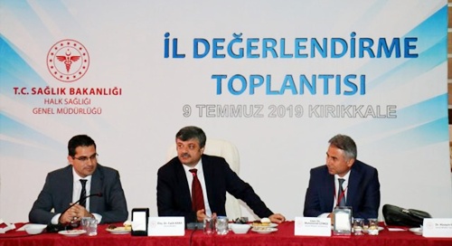 Kırıkkale Halk Sağlığı Müdürlüğü tarafından değerlendirme toplantısı düzenlendi. Sağlık Müdürlüğü Toplantı Salonunda gerçekleştirilen toplantıda konuşan İl Sağlık Müdürü Dr. Murat Ağırtaş, kentte birinci basamak halk sağlığı hizmetleri değerlendirilerek kurumlar arası işbirliğin önemine vurgu yapıldığını söyledi. Yapılacak çalışmalarda ortak hareket noktalarına gelinmesinin hedeflendiğini belirten Ağırtaş, "Özellikle koruyucu sağlık hizmetlerinin ön planda olması nedeni ile Sağlıklı Hayat Merkezlerinin ve aile hekimliklerinin daha aktif kullanılarak halkımızın buralardan hizmet alması değerlendirildi. Okul öncesi ve okul sonrası ağız diş sağlığı hizmetleri, ergen sağlığı hizmetleri, aşı çalışmaları, sağlıklı beslenme, bağımlılıkla mücadele, anne ve bebek ölümlerinin engellenmesi ve çevre sağlığı hizmetleri gibi birçok konu hakkında değerlendirmeler yapıldı." diye konuştu. Toplantıya, Halk Sağlığı Genel Müdürü Doç. Dr. Fatih Kara, Halk Sağlığı Genel Müdür Yardımcıları Dr. Hüseyin İlter ve Uzm. Dr. Muhammet Çömçe ile yetkililer katıldı.
