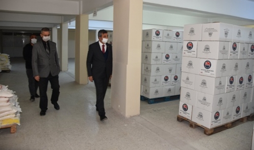 Kırıkkale Valisi Yunus Sezer, yardım paketlerinin depolandığı alanda inceleme yaptı.
