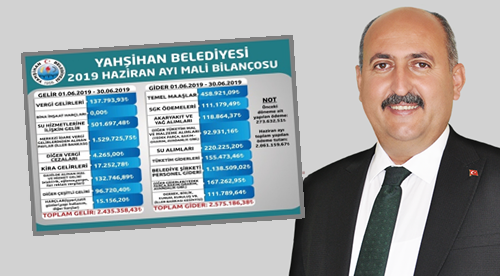 Yahşihan Belediye Başkanı Osman Türkyılmaz, göreve başladığı günden bu yana şeffaf bir yönetim sergiliyor. Nisan ve Mayıs ayının mali bilançosunu açıklayan Türkyılmaz, Haziran ayının mali bilançosunu da açıkladı.