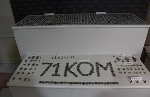 Otomobilde arama yapan KOM ekipleri, 880 sikke ve madeni para ile 72 parça mühür, yüzük haç, ok uçları ve hassas terazi ele geçirdi. Tarihi eser niteliği taşıyan malzemelerin Osmanlı ve Roma dönemlerine ait olduğu değerlendiriliyor. Olayla ilgili olarak emniyette işlemleri devam eden E.R. ve Ö.A. hakkında işlem yapıldı. Emniyet ekiplerinin konuyu derinleştirerek çalışmalarını sürdüreceği belirtiliyor.
