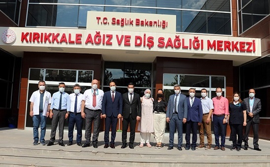 Ağız ve diş sağlığı hizmet kalitesinin artırılması, etkin ve verimli çalışmaların yürütülmesi ile koruyucu ve tedavi edici ağız ve diş sağlığı hizmet planlaması amacıyla yerinde değerlendirmeler yapmak amacıyla Kırıkkale Ağız ve Diş Sağlığı Merkezimizi ziyaret eden Ağız ve Diş Sağlığı Dairesi Başkanı Doç. Dr. Emre Korkut ve beraberindeki heyet, binanın fiziki durumu, işleyişi, merkezde verilen hizmetler ile doktor kapasitesi hakkında incelemelerde bulunarak ADSM Başhekimi Dt. Abdullah Üçer’den 2021 yılı plan ve programları hakkında bilgiler aldı.
