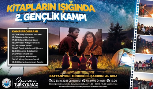 Yahşihan Belediyesinin düzenlediği İkisi Bir Arada Kamp etkinliği 26 Kasım 2022 Cumartesi günü Hisarköy Ormanın'da saat 15:30’da gerçekleşecek. Etkinlik arabalı sinema ve kitap okuma kampı faaliyetlerini katılımcılara bir arada sunacak. Katılımın ücretsiz olduğu etkinlik servis araçları 14:30-15:00-16:00 saatlerinde Kırıkkale Üniversitesi B Kapısından hareket edecek.