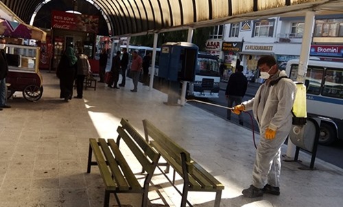 Çalışmayla ilgili bilgi verildi ve “Kırıkkale Belediyesi Koranavirüse karşı her alanda dezenfekte savaşını sürdürüyor. Åžehirdeki tüm okulları, camileri dezenfekte eden ekipler vatandaÅŸların toplu olarak bulundukları alanları, bankamatikleri ve toplu taşıma araçlarını dezenfekte ederek mücadelesine devam ediyor. Kırıkkale Belediyesi Temizlik İşleri MüdürlüÄŸüne baÄŸlı ekipler koronavirüsü tehdidine karşı hijyen çalışmalarını aralıksız sürdürüyor. Özel olarak oluÅŸturulan ekipler, ÅŸehir genelindeki tüm okulları dezenfekte ederek öÄŸrencilerin saÄŸlıklı ortamda eÄŸitim görmelerine katkı sunarken aynı duyarlılığı tüm camilerde de sürdürdü. Virüs tehdidi atlatılıncaya kadar sürecek olan mücadelede belediye ekipleri yönetmeliklere uygun ilaçlar kullanıyor” açıklaması yapıldı.