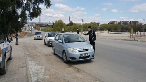 Kırıkkale'nin Bahşılı ilçesi girişinde emniyet güçleri ateş ölçer ve maske kontrollerini sıklaştırdı