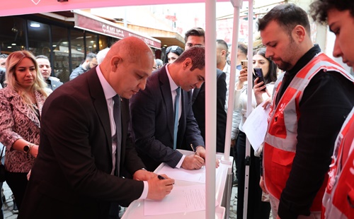 Silivri Cezaevi’nde tutuklu bulunan İstanbul Büyükşehir Belediye Başkanı Ekrem İmamoğlu’nun serbest bırakılması için ülke genelinde başlatılan imza kampanyasına, Kırıkkaleliler ilgi gösteriyor. CHP Kırıkkale İl Başkanlığı önünde açılan stantta ilk destek imzaları Kırıkkale Belediye Başkanı Ahmet Önal ve CHP Kırıkkale İl Başkanı Onur Yüksel Bozda tarafından atıldı. Daha sonra sıraya giren yurttaşlar kampanyayı imzaladılar.