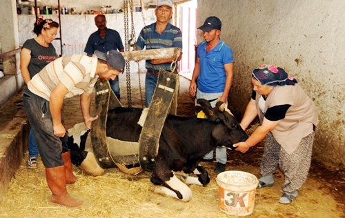 Kırıkkale'nin Delice ilçesine bağlı Kocabaş köyünün muhtarı Haydar Bozdağ, ayağa kalkamayan ineğinin, özel bir düzenekle beslenmesini sağlıyor. Hayvancılıkla uğraşan 58 yaşındaki Bozdağ, 2 yaşındaki "Cemile" adını verdiği ineğinin, bir hafta önce birkaç tosunun arasında kaldıktan sonra rahatsızlandığını fark etti. Bozdağ, rahatsızlığı nedeniyle ayağa kalkamayan, bu yüzden beslenemeyen ve su içemeyen hayvanının yeniden sağlığına kavuşması için çözüm arayışına girdi. Ahıra "caraskal" denilen özel düzeneklerden kuran Bozdağ, hayvanın ayağa kalkmasını ve beslenmesini sağladı.