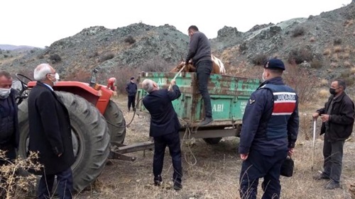 Kırıkkale'de otlarken ayağı kırılan hamile bir inek, mahsur kaldığı daÄŸdan kurtarılması için ekipler seferber oldu. Uzun uÄŸraÅŸlar sonucu dere yatağına indirilen inek traktör römorkunda hayvan hastanesine götürüldü. Kırıkkale'nin YahÅŸihan ilçesinde baÄŸlı Hacıbalı köyündeki bir daÄŸda dün akÅŸam saatlerinde otlarken ayağı kırılan hamile inek burada mahsur kaldı. Hayvan yetiÅŸtiriciliÄŸi yapan Dursun DoÄŸan, gece köylülerle birlikte ineÄŸi kurtaramayınca yetkililerden destek istedi. Olay yerine gelen İlçe Jandarma Komutanlığına baÄŸlı ekipler ise sabaha kadar ineÄŸin başında nöbet tuttu.İl Tarım ve Orman MüdürlüÄŸü ekipleri ile jandarma ve köylülerin yardımıyla inek yürütülerek uzun uÄŸraÅŸlar sonucu dere yatağına indirildi. Burada traktör römorkuna bindirilen inek Veterinerlik Fakültesi Hayvan Hastanesi'ne götürüldü. Veteriner hekimler tarafından ineÄŸe ilk müdahale römorkun üstünde yapıldı. İneÄŸin saÄŸlık durumu iyi olduÄŸu bildirildi.