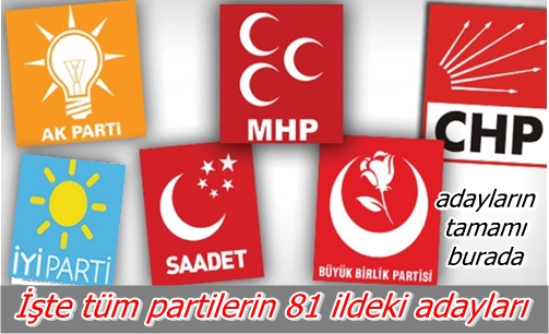 24 Haziran tarihinde yapılacak olan genel seçimler içi partilerin listesi belirlendi. Haber318 tüm partilerin 81 ildeki adaylarını yayınlıyor...