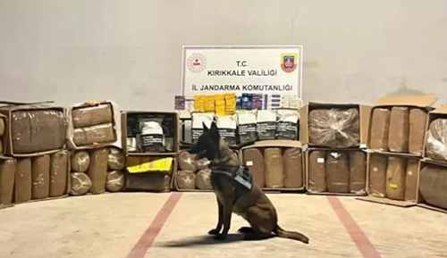 Kırıkkale'de jandarma ekiplerince kaçak 1 ton 105 kilogram tütün ve 909 paket sigara ele geçirildi, gözaltına alınan şüpheli tutuklandı. İl Jandarma Komutanlığı ekipleri, istihbarat çalışması kapsamında Delice ilçesinde bir kargo aracını durdurdu. Narkotik dedektör köpeği "Alkış"ın da katılımıyla kamyonda yapılan aramada, 1 ton 105 kilogram kaçak tütün ve 909 paket kaçak sigara ele geçirildi. Gözaltına alınan sürücü M.S.K. (55) jandarmadaki işlemlerinin ardından sevk edildiği adliyede hakimlikçe tutuklandı. M.S.K'nin kullandığı aynı araçta 9 Ekim 2024'te de 710 kilogram kaçak tütün ele geçirilmiş, gözaltına alınan sürücü işlemlerinin ardından serbest bırakılmıştı.