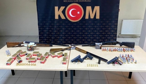 Kırıkkale'de düzenlenen silah kaçakçılığı operasyonunda 3 kiÅŸi gözaltına alındı. Alınan bilgiye göre, Kırıkkale İl Emniyet MüdürlüÄŸü Kaçakçılık ve Organize Suçlarla Mücadele Åžubesi ekipleri, kent genelinde silah kaçakçılığına yönelik çalışma baÅŸlattı. Kırıkkale Cumhuriyet BaÅŸsavcılığı koordinesinde eÅŸ zamanlı düzenlenen operasyonda U.K., S.M.İ. ve K.Y. isimli ÅŸahıslar yakalanarak gözaltına alındı. Ekipler tarafından adreslerde yapılan aramalarda 1'i çalıntı olmak üzere 2 adet tabanca, 1 adet kuru sıkı tabanca, 3 adet yivsiz av tüfeÄŸi, 774 adet dolu tabanca fiÅŸeÄŸi, 108 adet dolu av tüfeÄŸi fiÅŸeÄŸi ele geçirildi. Gözaltına alınan 3 ÅŸahıs hakkında 6136 sayılı 'AteÅŸli Silahlar ve Bıçaklar Hakkında Kanun'a muhalefet' suçlarından adli iÅŸlem baÅŸlatıldı.