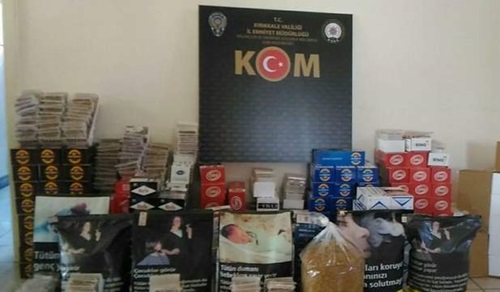 Kırıkkale'de bir apartmanın deposunda kaçak tütün, makaron ve elektronik sigara ele geçirildi, 2 şüpheli gözaltına alındı.