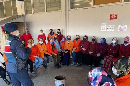 Jandarma ekipleri kadınları KADES uygulaması konusunda bilgilendiriyor.