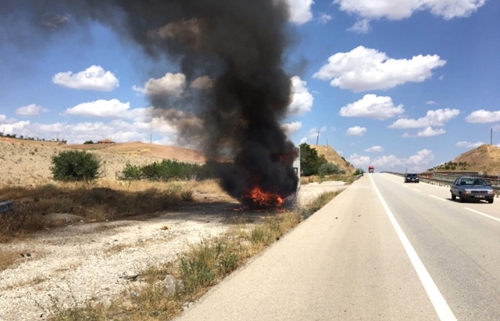 Kırıkkale'de yol kenarında dinlenmek amacıyla mola veren sürücünün kamyoneti alev alev yandı. Olay, Kırıkkale-Samsun karayolunun 5'inci kilometresinde meydana geldi. Edinilen bilgiye göre, sürücü Bekir Åž. 06 AB 8104 plakalı kamyoneti dinlenmek amacıyla yol kenarına park etti. Sürücünün uyuduÄŸu sırada henüz bilinmeyen bir nedenden dolayı kamyonet alev aldı. Yangını fark eden sürücü Bekir Åž. itfaiye ekiplerine haber verdi. Kısa sürede olay yerine gelen itfaiye erleri yanan kamyonete müdahale etti. Yangının söndürülmesinin ardından kamyonet kullanılamaz hale geldi. Olayla ilgili soruÅŸturma baÅŸlatıldı.