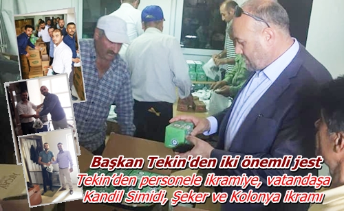 Kadir Gecesi dolayısıyla ilçede dağıtılmak üzere kandil simidi, bayram için de ÅŸeker ve kolonya aldıran BaÅŸkan Tekin, simit, ÅŸeker ve kolonyaların paketlemesine bizzat kendisi katıldı. Bu güzel ve anlamlı çalışma için de bilgi veren BaÅŸkan Tekin, “Bütün bayramlarınız, bütün Kadir Geceleriniz ÅŸeker tadında geçmesi dileÄŸi ile hayırlı kadir geceleri hayırlı ramazan bayramları dileriz. Bahşılı halkımıza kandil simidi, kolonya ve bayram ÅŸekeri ikram ederek Kadir Gecemizi idrak ediyoruz. Bütün inananların yardımcısı olsun Yaradanımız” dedi.