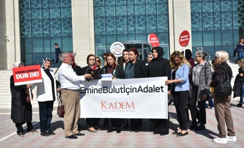 Kırıkkale'de eski eşi tarafından 10 yaşındaki kızının yanında boğazından bıçaklanarak öldüren Emine Bulut cinayeti davasını takip etmek için Kırıkkale Adalet Sarayı'na gelen KADEM üyeleri adına açıklama yapan Sarı, Emine Bulut'un, eski eşi tarafından kızının gözleri önünde canice katledildiğini anımsattı. Sokakta koşup oynaması gereken yaşta babasının annesine uyguladığı vahşete tanık olan 10 yaşındaki kız çocuğunun "Anne ölme" sözlerinin herkesin içinde kapanması zor yaralar açtığını vurgulayan Sarı, "Yaşam hakkı, insan haklarının temelini oluşturan mutlak bir haktır. Doğuştan sahip olduğumuz bu hakkın, insani ve vicdani duygulardan yoksun kişiler tarafından gasbedilmesi kabul edilemez. 'Ölmek istemiyorum' çığlıklarıyla hayattan koparılan Emine Bulut ve nice şiddet kurbanı için kanunların etkili ve caydırıcı olarak uygulanması büyük önem taşımaktadır." dedi.