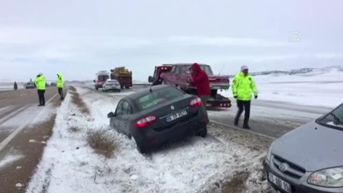Kırıkkale'nin Keskin ilçesinde dün akşam başlayan ve aralıklarla devam eden kar yağışı hayatı olumsuz etkiliyor.Kar ve tipi nedeniyle Kırıkkale- Kayseri kara yolunda ulaşımda aksama yaşanmaması için ekipler çalışmalarını aralıksız sürdürüyor.Buzlanma nedeniyle kara yolunun Yeniyapan köyü yakınlarında 3 otomobil, refüje girdi. Kazalarda, hasar oluştu. Polis ekipleri, trafiğin aksamaması için meydana gelen kazalara kısa sürede müdahale ediyor, buzlanmanın olduğu bölgelerde araç sürücülerine de dikkatli seyretmeleri konusunda uyarıda bulunuyor.Kara yolları ekipleri de yolları ulaşıma açık tutmak için çalışmalarına devam ediyor.