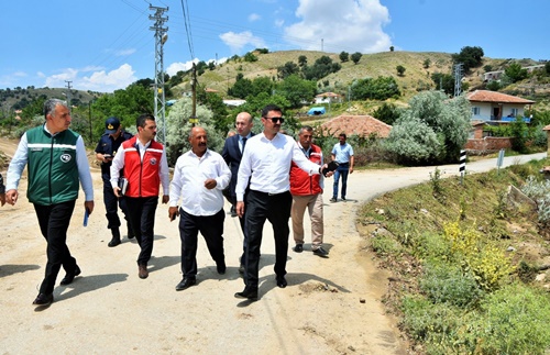 Kırıkkale Valisi Bülent Tekbıyıkoğlu, Karacalı Köyünde dün yaşanan şiddetli yağmurdan olumsuz etkilenen bölgelerde incelemelerde bulundu.