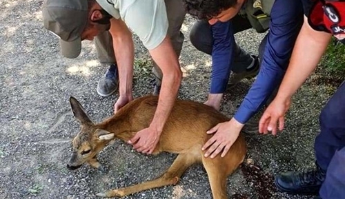 Çankırı'da bir aracın çarptığı karaca tedavi altına alındı.
