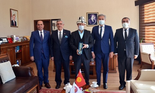 Kırgızistan-Türkiye Manas Üniversitesi Rektörü Prof. Dr. Alpaslan Ceylan, Rektör Vekili Prof. Dr. Asılbek Kulmırzayev ve Rektör Yardımcısı Prof. Dr. Mustafa Orçan, Rektör Prof. Dr. Ersan Aslan'ı ziyaret etti.