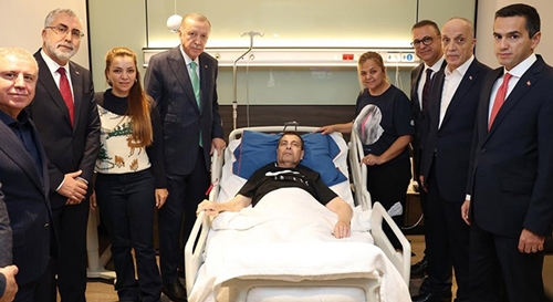 Cumhurbaşkanı Erdoğan, eski milletvekili Özcan ve sendikacı Türk Metal Sendikası Başkanı Pevrul Kavlak'ı hastanede ziyaret etti. Cumhurbaşkanı Recep Tayyip Erdoğan, tedavi gören eski AK Parti Şanlıurfa Milletvekili Halil Özcan ile Türk Metal Sendikası Genel Başkanı Pevrul Kavlak'ı ziyaret etti. Erdoğan, hastanede ziyaret ettiği Kavlak ve Özcan'a geçmiş olsun dileklerini iletti.