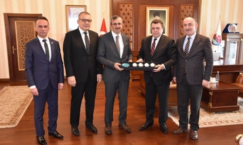 Belediye BaÅŸkanı Mehmet Saygılı ile birlikte Türkiye genelinde olduÄŸu gibi Kırıkkale’de de çeÅŸitli sektörlerde çalışan iÅŸçilerin haklarının korunması mücadelesini veren Türk Metal Sendikası Genel BaÅŸkanı Pevrul Kavlak, Kırıkkale’ye çeÅŸitli yatırımlar yapan Teleses Yönetim Kurulu BaÅŸkanı Recep Uzelli ve Türk Metal Sendikası Åžube BaÅŸkanı Murat DemirbaÅŸ, Vali Yunus Sezer’i ziyaret etti. Kırıkkale hakkında karşılıklı yatırım ve diÄŸer çeÅŸitli çalışmaların görüÅŸülmesinin arından Vali Seze’e ziyaret anısına kahve fincanı hediye edildi. Ziyaretten duyduÄŸu memnuniyeti dile getiren Sezer, Kırıkkale genelinde yapımı devam eden ve yapılması planlanan çalışmalar hakkında bilgi verdiklerini ifade etti. Sezer, daha güzel çalışmalara imza atılması amacıyla birlik ve beraberlik içinde çalışma sergilediklerini dile getirdi.