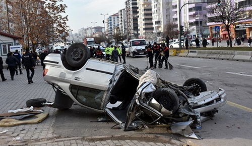 Alperen Durmaz (19) idaresindeki 06 BN 748 plakalı otomobille Bekir Bülbül'ün kullandığı 34 LL 8883 plakalı cip, Alpaslan Türkeş Bulvarı Etiler kavşağında çarpıştı. Çarpışmanın etkisiyle savrulan otomobil, refüje çarparak devrildi. İhbar üzerine kaza yerine polis, sağlık ve itfaiye ekipleri sevk edildi. Kazada otomobilde sıkışan sürücü Durmaz ile Şule Akkaya (17), itfaiye ve sağlık ekiplerince çıkarıldı.Yaralılar, 112 Acil Servis ekiplerince Kırıkkale Üniversitesi Tıp Fakültesi Hastanesi'ne kaldırıldı.