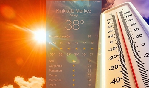 Mevsim normalleri civarında seyreden sıcaklıkların hissedilir derecede artarak özellikle İç Anadolu ve doÄŸu bölgelerinde normal sıcaklıkların 5 ila 8 derece üzerine çıkması bekleniyor. Haftanın ikinci yarısında ise sıcaklıkların tekrar düÅŸerek ülke genelinde mevsim normallerinin seviyesinde seyredeceÄŸi tahmin ediliyor. Özellikle sıcak havalarda uzmanlar tarafından güneÅŸ ışınlarının dik geldiÄŸi 11 ile 16 saatleri arasında yaÅŸlılar, çocuklar ve kronik rahatsızlığı olan vatandaÅŸların sıcak çarpmasına karşı dikkatli ve tedbirli olmaları bu nedenle bu saatlerde evlerinden dışarıya çıkmamaları tavsiye ediliyor. Kırıkkale'de sıcaklığın etkisi öÄŸle saatlerine doÄŸru belirgin bir ÅŸekilde kendini hissettirmeye baÅŸladı. Sıcaktan bunalanlar evlerinden çıkmadıklarını, kentteki meydanlarda, cadde ve sokaklarda kısmen insan yoÄŸunluÄŸunun azaldığını söyleyebiliriz. Gün içinde en yüksek sıcaklığın 38 dereceye kadar yükseldiÄŸi görüldü.