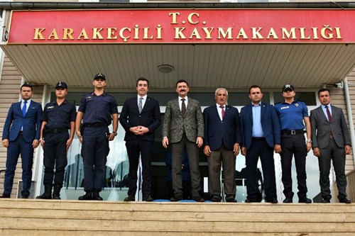 Kırıkkale Valisi Bülent TekbıyıkoÄŸlu, Karakeçili Kaymakamı olarak göreve baÅŸlayan Ali Can UludaÄŸ’a hayırlı olsun ziyaretinde bulundu. Kırıkkale Valisi TekbıyıkoÄŸlu’nu Karakeçili Belediye BaÅŸkanı Veysel Aydemir, Karakeçili Kaymakamı Ali Can UludaÄŸ ve Kurum Amirleri karşıladı. Karşılamanın ardından Kaymakamlık makamına geçen TekbıyıkoÄŸlu, Belediye BaÅŸkanı Aydemir’den ve Kaymakam UludaÄŸ’dan çalışmalar hakkında bilgiler aldı.