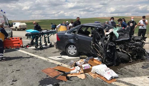 M.A. (66) idaresindeki 16 ARR 90 plakalı otomobil, Kırıkkale-Çorum kara yolunun 55. kilometresinde refüjdeki trafik levhasına çarptıktan sonra savrularak karşı yönden gelen S.A. (61) idaresindeki 06 BK 3336 plakalı TIR’la çarpıştı. Kazanın ardından olay yerine sağlık, jandarma, polis ve itfaiye ekibi sevk edildi. Ekipler, otomobilde sıkışan S.S.A'nın (65) yaşamını yitirdiğini belirledi. Yaralanan sürücüler ise 112 Acil Servis ekiplerince kentteki hastanelere kaldırıldı.
