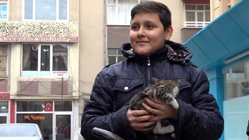 Kırıkkale'de bir iş yerinin tabelasında 1 gündür mahsur kalan kedi itfaiye ekiplerince kurtarıldı. O sırada bisikletiyle yoldan geçen 14 yaşındaki bir çocuk ise kediyi sahiplendi. Kırıkkale'de Yenidoğan Mahallesi 603. Sokak'taki esnaflar iş yeri tabelasından gelen kedi sesini fark etti. Kendi imkanlarıyla kediyi kurtarmaya çalışan vatandaşlar, başarılı olamayınca Kırıkkale Belediyesi İtfaiyesine haber verdi. Gelen itfaiye ekibi, tabelada mahsur kalan kediyi kurtarmak için çalışma başlattı. Tabeladan bir parça sökülerek aparat yardımıyla kedinin dışarıya çıkması sağlandı. O sırada yoldan geçen 14 yaşındaki Mehmet Üzüm kurtarılan kediyi sahiplendi.