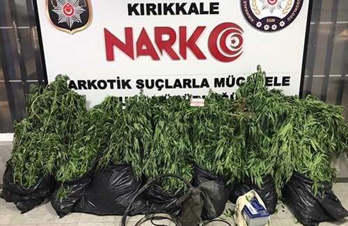 Kırıkkale'nin YahÅŸihan ilçesinde, Kızılırmak kıyısında Hint keneviri yetiÅŸtiren 2 ÅŸüpheli tutuklandı. İl Emniyet MüdürlüÄŸü Narkotik Suçlarla Mücadele Åžubesi ekipleri, Kızılırmak kenarında izinsiz kenevir bitkisi yetiÅŸtirdikleri ihbarı üzerine A.B. ile M.O'yu teknik ve fiziki takibe aldı.Ekipler, Hint kenevirlerini hasat etmek için bölgeye gelen 2 ÅŸüpheliyi suç üstü yakaladı.Bölgede yapılan aramada, 125 kök kenevir bitkisi, kurumaya bırakılmış 340 gram esrar ile bitkileri sulamada kullanılan malzemeler ele geçirildi.Gözaltına alınan A.B. ile M.O. emniyetteki iÅŸlemlerinin ardından sevk edildikleri nöbetçi hakimlikçe tutuklandı.