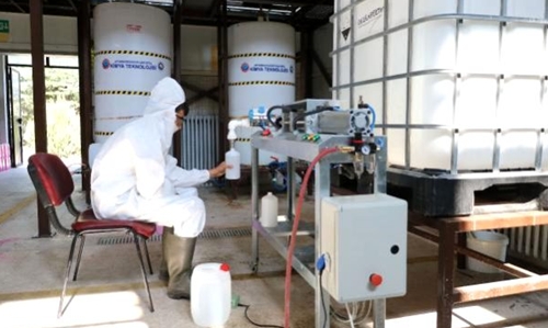 Üretime başlama aşamasını anlatan Gazi Mesleki ve Teknik Anadolu Lisesi Okul Müdürü Mehmet İvecen, "Pandemi döneminde Meslek Teknik Eğitim Genel Müdürlüğü'müz 32 okul arasında kimya teknolojisi olup, deterjan ve dezenfektan üretebilecek kapasitesi olan okulları belirledi. Mart itibarıyla dezenfektan üretimimize başladık. Şu ana kadar okul olarak Afyonkarahisar ilinin tüm ilçeleri ve merkezin üretimini gerçekleştirdik. Onun haricinde Uşak, Eskişehir, Muğla, Kırıkkale illerinin bir kısmının dezenfektan ihtiyaçlarını karşıladık. 350 ton yüzey dezenfektanı ürettik şu ana kadar. Onun haricinde el dezenfektanı nisan ayı itibarıyla Meslek Teknik Eğitim Genel Müdürlüğümüzün ve Tarım Orman Bakanlığı'mızın izinleri doğrultusunda alkol izni vermesiyle üretimimize de başladık. Bunda da 7 tonluk bir üretimimiz oldu. Bunları da Afyonkarahisar İl Milli Eğitim Müdürlüğümüzün ihtiyaçları, onun haricinde çevre illerin ihtiyaçlarını karşılamaya devam ediyoruz" dedi.