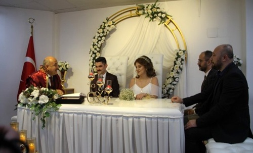 Kırıkkale'nin YahÅŸihan Belediye BaÅŸkanı Osman Türkyılmaz, bu kez kendi kızının nikahını kıydı. Kırıkkale'nin YahÅŸihan İlçe Belediye BaÅŸkanı Osman Türkyılmaz'ın kızı Ecem Sena Türkyılmaz ile İsmail Türkcan'ın nikah töreni gerçekleÅŸti. Belediye Nikah Salonundaki törende çiftlerin nikah ÅŸahitliÄŸini Milliyetçi Hareket Partisi (MHP) Kırıkkale İl BaÅŸkanı Erdal BaloÄŸlu ile Gökay Gül yaptı. BaÅŸkan Türkyılmaz genç çiftlerin nikahını kıydıktan sonra ikiliye fidan hediye etti. Evlilik cüzdanını ise MHP İl BaÅŸkanı BaloÄŸlu tarafından çifte takdim verildi. Kızının nikahını kıymasından dolayı hem mutlu hem de onurlu olduÄŸunu ifade eden BaÅŸkan Türkyılmaz, Allah'tan hayırlı uÄŸurlu olmasını diledi. Kendisi için mutlu bir gün olduÄŸunu dile getiren damat İsmail Türkcan, "Benim için en mutlu gün diyebilirim. MutluluÄŸumuz anlatılmaz yaÅŸanması lazım. Allah herkese nasip eyler" dedi. Babasının duygularını yaÅŸadığını belirten Ecem Sena Türkyılmaz da hem mutlu hem de hüzünlü olduÄŸunu söyledi.