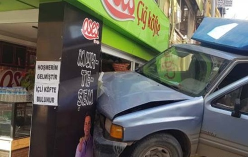 Zafer Caddesi Şehit Hasan Sokak üzerine park edilen ekmek aracı, cadde üzerinde ki çiğ köfte dükkanına camdan girdi. Olay maddi hasarla sonuçlandı.