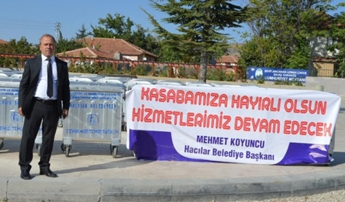 Başkanlık görevine geldiği günden itibaren sergilediği mücadeleyle halkın gönlünü kazanan ve kasabada birlik, beraberlik sergileyen Hacılar Belediye Başkanı Mehmet Koyuncu, çevre temizliğine yönelik önemli bir çalışma gerçekleştirdi. Başkan Koyuncu, Çevre ve Şehircilik Bakanlığı ile yaptığı görüşme sonucunda kasabaya 57 adet hibe çöp konteynırı kazandırdı. Başkan Koyuncu, “İnşallah temiz bir Hacılar kasabası için elimizden gelenin fazlasını yapacağız” dedi.