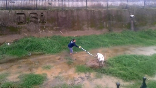 Köpek dereye düştü