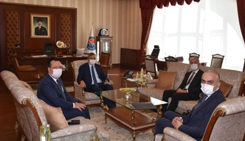 Ziraat Bankası Ankara Bölge Müdürü Yusuf Cenk Şahım, beraberinde Kırıkkale Merkez Şube Müdürü Ümit Yaşar Ören ile birlikte Kırıkkale Valisi Yunus Sezer'i makamında ziyaret etti.