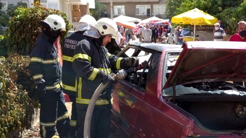 Kırıkkale'de alev topuna dönen park halindeki LPG'li otomobile itfaiye ekiplerinin erken müdahalesiyle olası bir facianın önüne geçildi.
