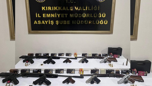 Kırıkkale Emniyet MüdürlüÄŸüne baÄŸlı AsayiÅŸ Åžubesi ekiplerince Karşıyaka Mahallesindeki bir asker gecesi ile Millet Bulvarı üzerinde yapılan uygulamalarda ruhsatsız tabanca, tüfek ve fiÅŸek ele geçirildi. Kente huzur ve güvenliÄŸin saÄŸlanması amacıyla yürütülen çalışmaları aralıksız sürdüren Kırıkkale Emniyet MüdürlüÄŸü ekipleri, Karşıyaka ve Millet caddesinde yakalanan 4 adet Tabanca, 2 adet Kuru Sıkı Tabanca, 2 adet Tüfek, 1 adet Uçaksavar FiÅŸeÄŸi, 1 adet 7.62 mm FiÅŸek, 525 adet fiÅŸek tabanca ve tüfeklere el koyarken 4 kiÅŸiyi göz altına aldı. Tabanca, tüfek ve fiÅŸeklerle alakalı olarak göz altına alınan ÅŸahıslar hakkında ise yasal iÅŸlem baÅŸlatıldı.