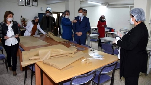 Kırıkkale Valisi Yunus Sezer, koruyucu maske üretimi yapılan Halk Eğitim Merkezini ziyaret etti. İl Hıfzısıhha Kurulunca alınan kararlarlar doğrultusunda salgının yayılmaması için sosyal mesafe ile birlikte pazar yeri, market ve toplu olarak çalışılan iş yerlerinde maske takma zorunluluğu getirilmesinin ardından Kırıkkale'deki Halk Eğitim Merkezlerinde maske üretim çalışmaları başlatıldı. Vali Yunus Sezer de, günde 5 bin koruyucu maskenin üretileceği merkezi ziyaret ederek yetkililerden çalışmalar hakkında bilgiler aldı. Çalışmalar hakkında bilgiler veren Vali Sezer, "Maskelerin vatandaşlarımıza ücretsiz olarak dağıtımına devam ediyoruz. İl ve İlçe Halk Eğitim Merkezlerimizde günlük 7 bin maske üreteceğiz. Tüm dünyayı saran bu salgından kaynaklarımızın tamamını sefer ederek ülke olarak, Kırıkkale olarak en az etkiyle geçirmeliyiz" dedi.