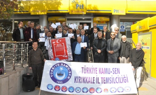 Grup adına konuşma yapan Türk Eğitim Sen Şube Başkanı A.Yücel Karacak, "3600 ek gösterge,yardımcı hizmetliler gibi konular acilen çözülmelidir. Biz, bu konuda hazırladığımız mektuplarımızı, ülkemizin her köşesinden sayın Cumhurbaşkanına,Değerli basın mensupları; Sosyal devlet olma ilkesini hiçe sayan, toplumumuzun büyük bir kesimini göz ardı ederek, çalışanlardan alınacak vergilere bel bağlayan 2020 bütçesi, "memurun bütçesi değildir."Bu bütçeyle 2020 yılının, başta kamuda çalışanlar olmak üzere, tüm vatandaşlarımız için geçmiş yıllardan daha da zor geçeceği ortaya çıkmıştır.Biz bu bütçede, gelirlerin kamu çalışanlarından kesilen vergilerle elde edileceğini ama gelirin paylaşımında memurun adının dahi olmadığını görüyoruz. Önümüzdeki sene için memur ve emekli maaşlarına %4+4 zam yapılması kararlaştırıldı. Bunun anlamı bütün bir yıl için iki taksitte toplam %8,2 yani ortalama memur maşına 329 lira, en düşük memur maaşına 247 lira zam demek. Halbuki daha geçen yıl 4 kişilik bir ailenin zorunlu harcamaları 1032 lira zamlanmıştı. Verilmesi öngörülen zam, harcamalar karşısında devede kulak bile kalmıyor. 2002 yılından beri vatandaşlarımızdan toplanan vergiler 10,4 kat artarken memur maaşları ancak 7,5 kat arttı. Yani maaşlardan yapılan kesintiler, maaş zammını aştı. Milli gelir büyüyor diyoruz. Milli gelirdeki artıştan dar gelirli ve ücretliler hak ettiği payı alamıyor.