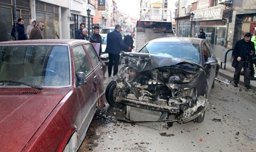 Kırıkkale kent merkezinde meydana gelen trafik kazasında ikisi ağır 3 kiÅŸi yaralandı. Sürücülerden birinin alkollü olduÄŸu öne sürülen kaza, güvenlik kameralarınca kaydedildi. Kaza, sabah saatlerinde Kırıkkale merkez Barbaros Hayrettin Caddesi'nde meydana geldi. Edinilen bilgiye göre, T.K. (20) idaresindeki 71 AAH 266 plakalı otomobil ile Ergenekon Caddesi'nden gelen İ.D. idaresindeki 71 AAP 377 plakalı otomobil kafa kafaya çarpıştı. Kazanın ÅŸiddetiyle savrulan T.K. idaresindeki otomobil park halindeki 4 araca daha çarptı. Kaza sonrasında yaralanan 3 kiÅŸiden sürücü İ.D. çevredeki vatandaÅŸlar tarafından özel bir araçla hastaneye kaldırıldı.