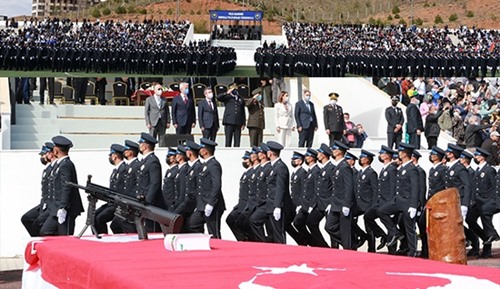 Polis Meslek Yüksekokulu Müdürü Mustafa Evren Yoğurtcu, ailelerin heyecanını yürekten paylaştığını belirterek, gençlerin artık zalimlerin ve hainlerin korktuğu, mazlumların ve mağdurların ise arkalarından dua ettiği yiğitler olduğunu vurguladı. Mezun polislerin, ülkenin geleceğinin huzuru ve teminatı olduğunu dile getiren Yoğurtcu, pırıl pırıl evlatları yetiştiren ve devletine hizmet etmeye adayan velilere de teşekkür etti. Programın sonunda mezun olan adaylar keplerini havaya fırlattı.