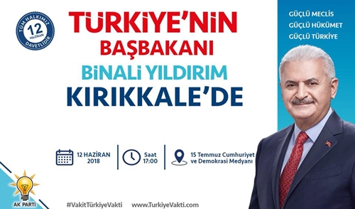 AK Parti'de BaşbakanIın katılacağı miting telaşı yaşanıyor. Başbakan Binali Yıldırım miting için Kırıkkale'de olacak. Miting Salı günü saat 17:00'de Cumhuriyet Meydanı'nda yapılacak. AK Parti Teşkilatı'nın miting için hazırlıkları tamamlandı. İl Başkanı Nuh Dağdelen, hazırlıkları denetledi ve herkesi mitinge davet etti.